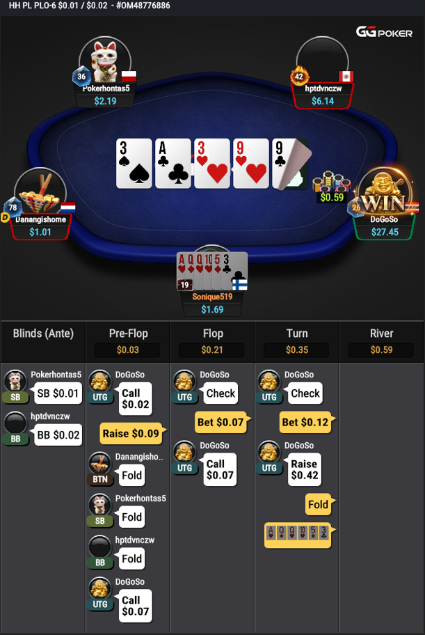 Viime viikolla siirryin käteisissä GGlle ja aloitin 6kortin omahan $2 binillä siellä.