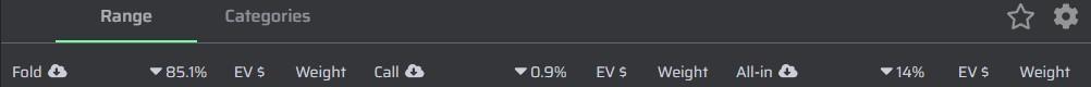 10bb kaikilla icm simu 85% fold 0,9 call aj 14% allin co vs bb