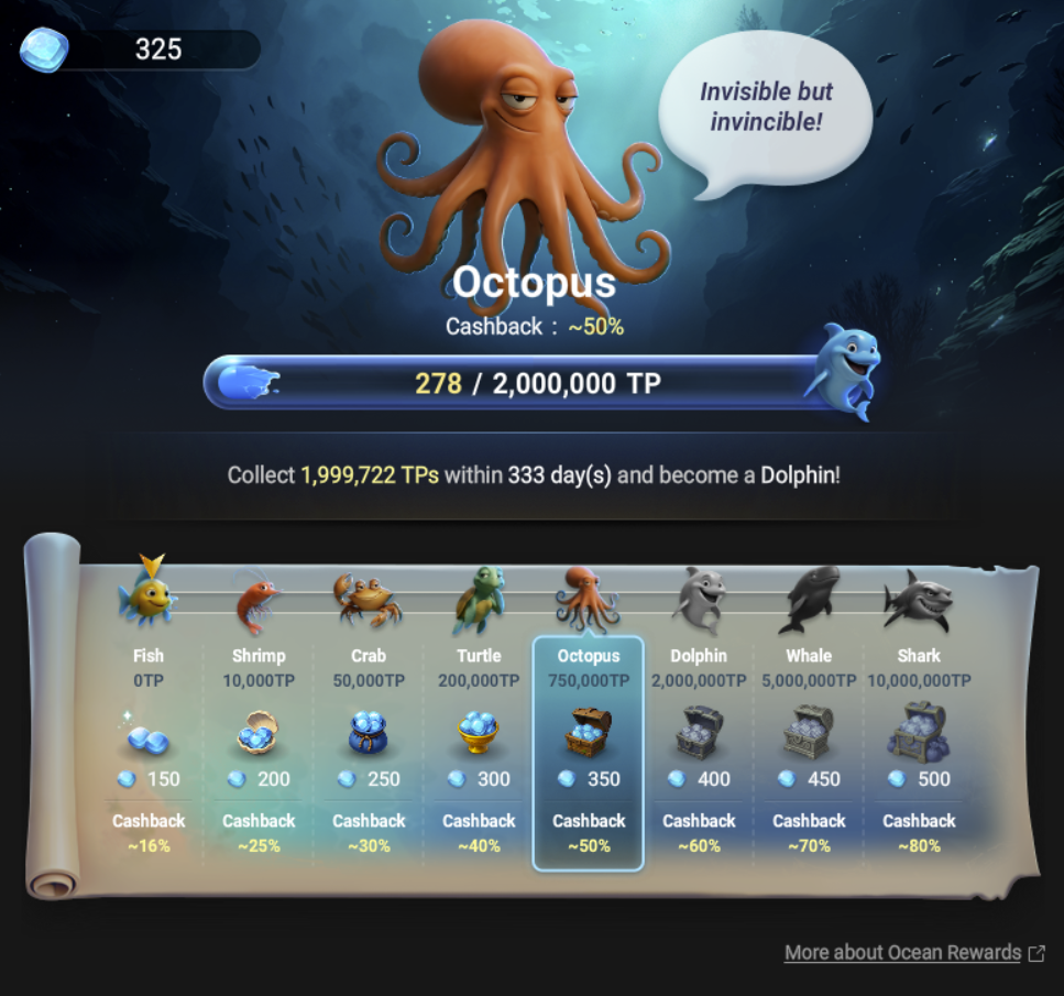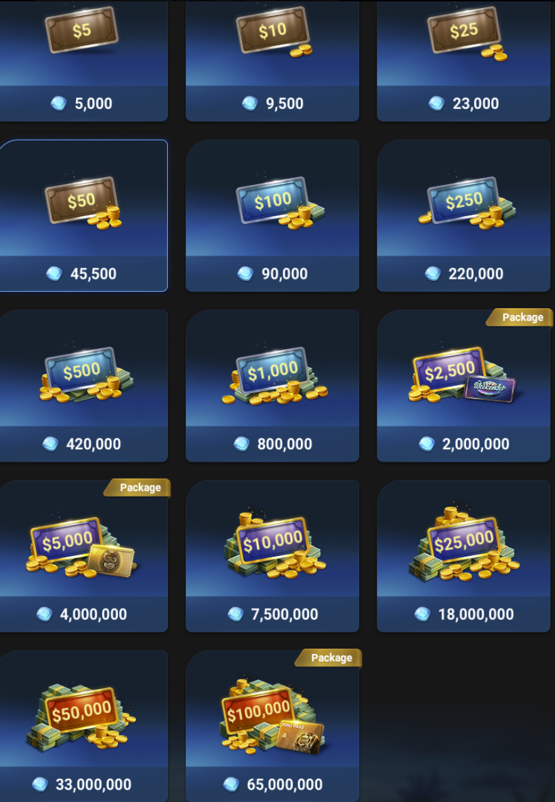 Esimerkiksi toi oma taso, eli gem multiplier on x3,5 ja siten jokaisesta reikatusta eurosta tulee 350 gem. Eli jos reikkaan tonnin, saan 350000 gem. Voin vaihtaa ne 250+100+25+10+5 palkintoihin, eli 385$ takaisin. Mainostetun 50% cashbackin sijasta saan 38,5%.