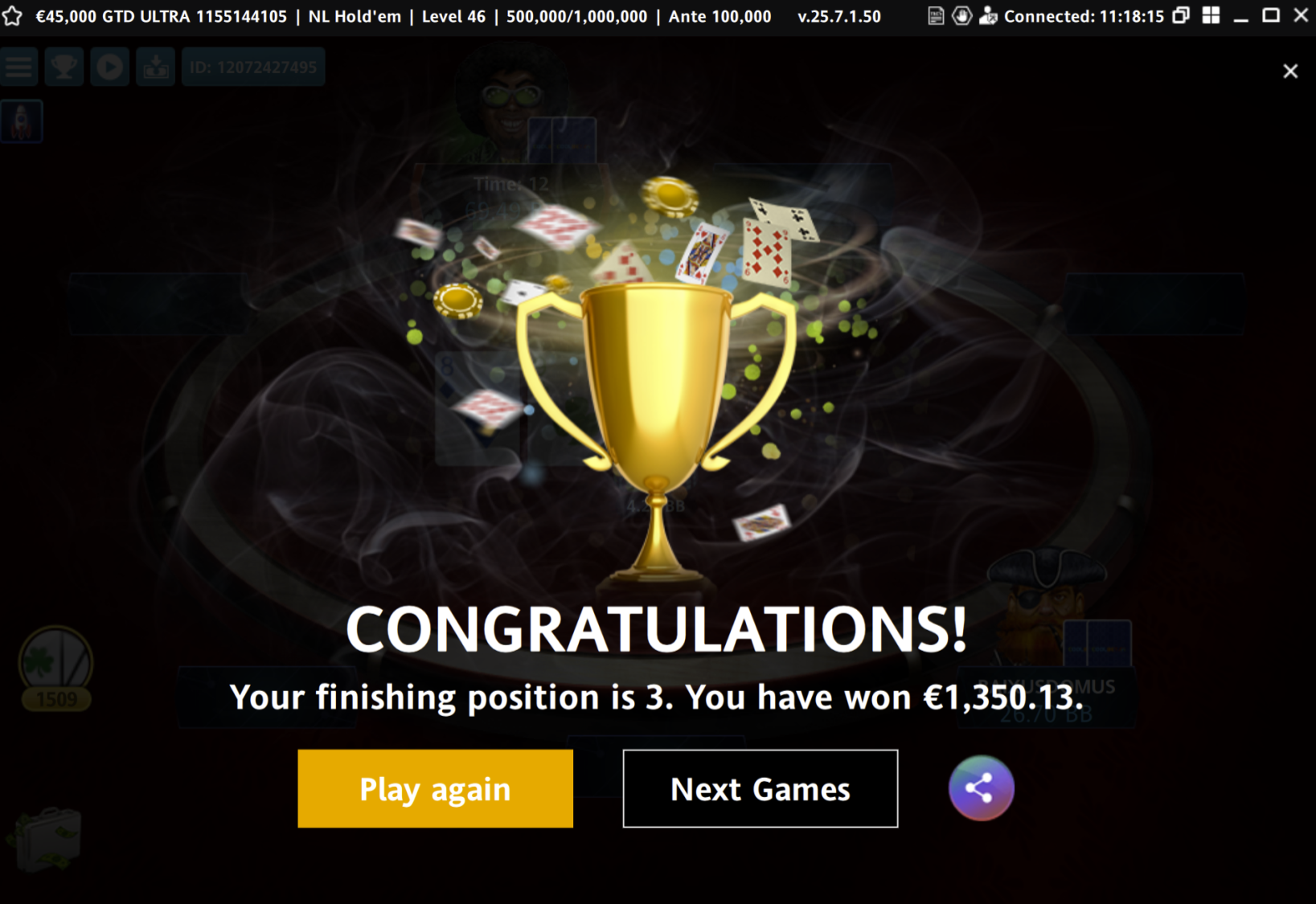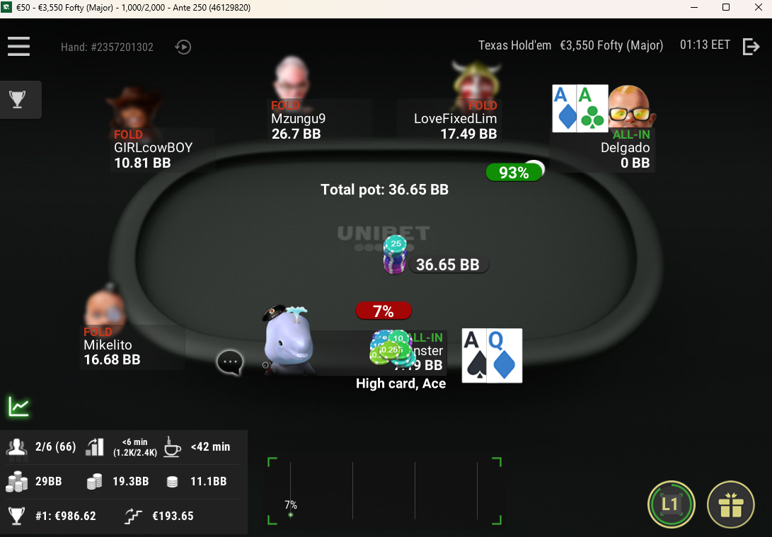 Parempi tulos toki kuin FT-bubble minkä nappasin toissapäivänä kun edellisen kerran pelasin tuon Ultran (tuuppasin KQ SB:lta, ja BB otti 63s vaikka oli mitättömiä bountyja ja arvasihan miten siinä kävi).