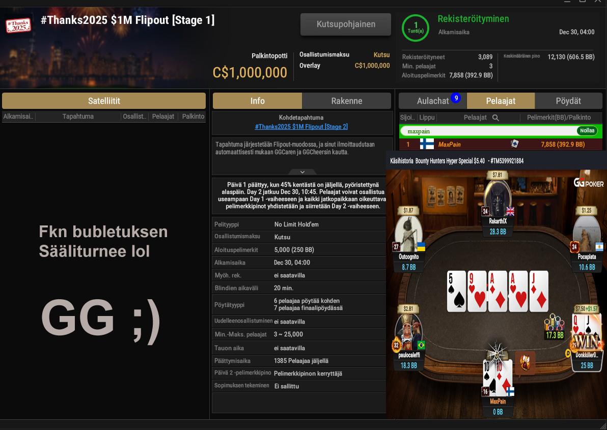 PokerBeatOsallistujaTaas one tablattiin pikkuturneeta tänään…