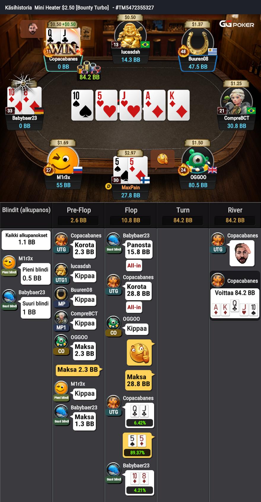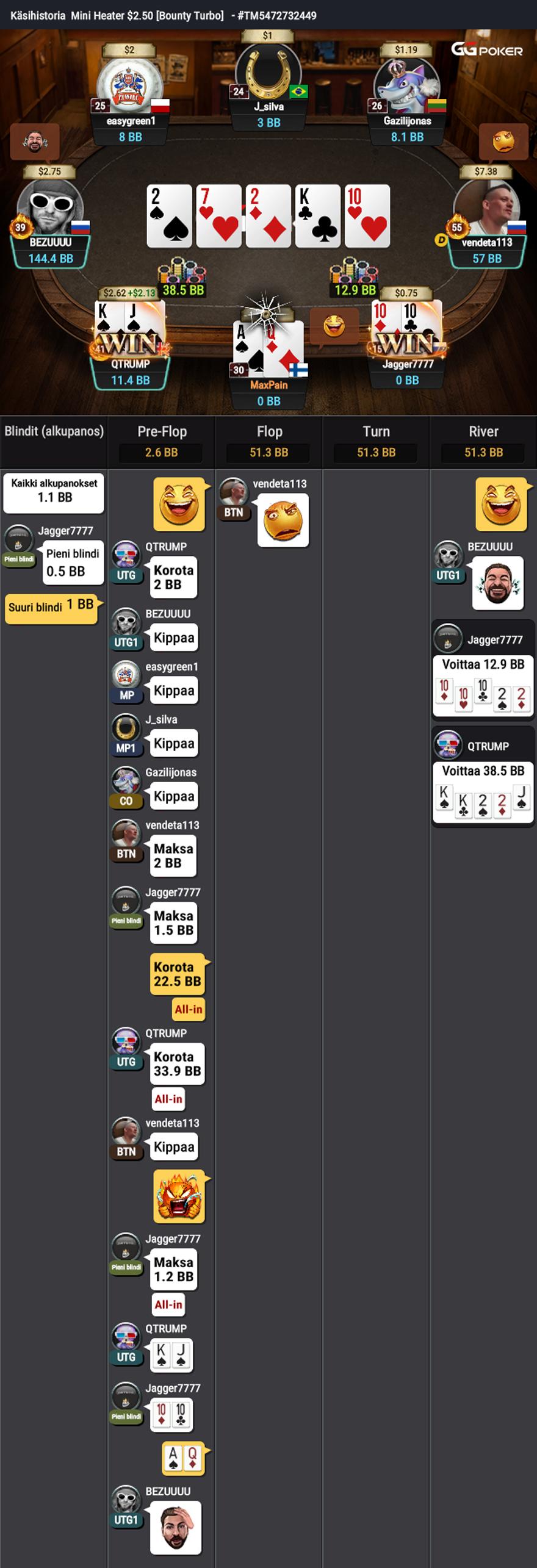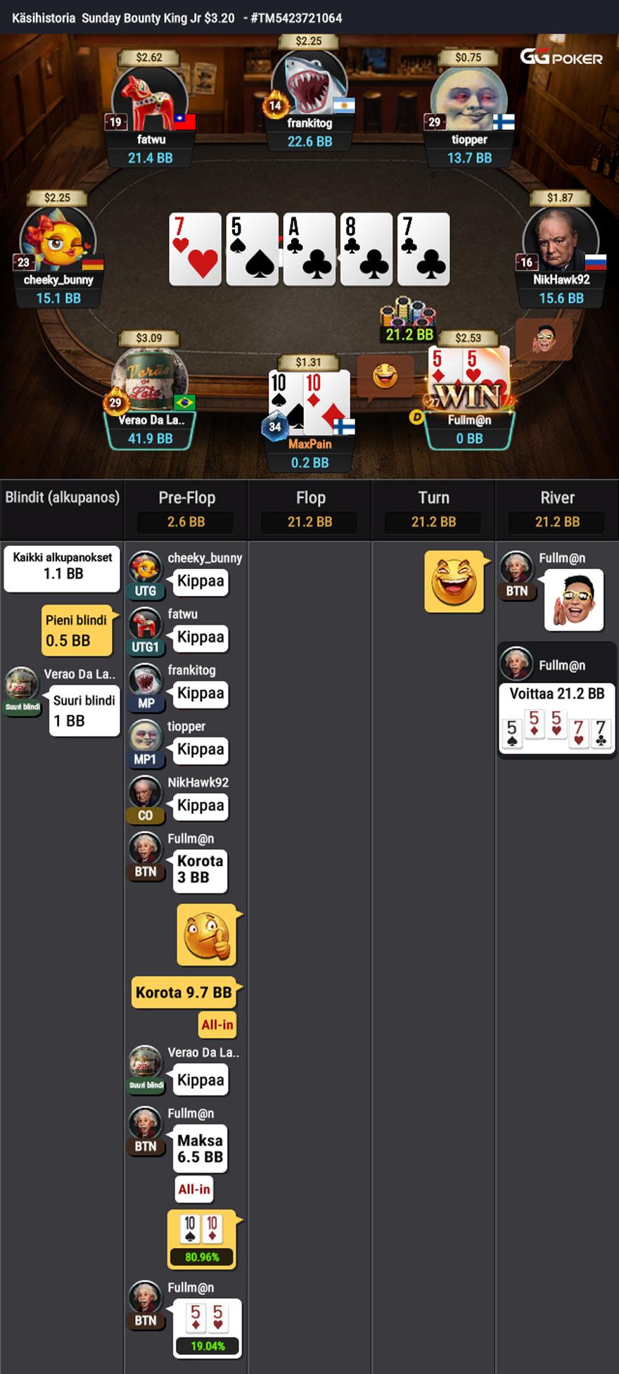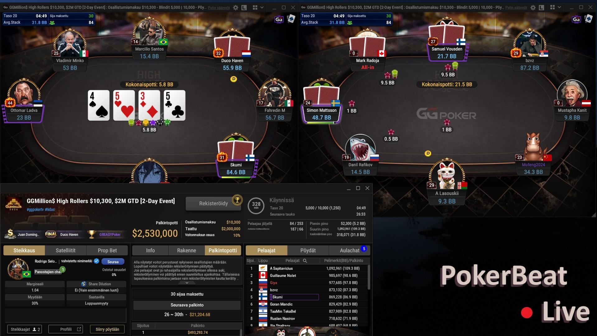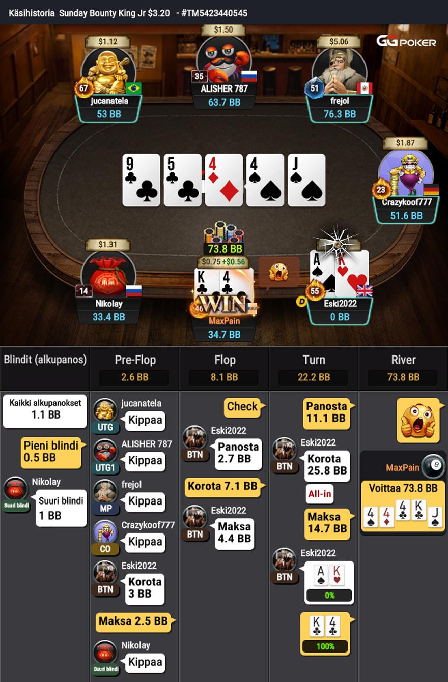 PokerBeatOsallistujaPistetään muutama kiva käsi GG:n peleistä :) Yleensä ottaen täällä on 10x kovempi taso kuin esim. Veikalla, toki välillä kivoista ”hedelmistä” saa täälläkin nauttia :D