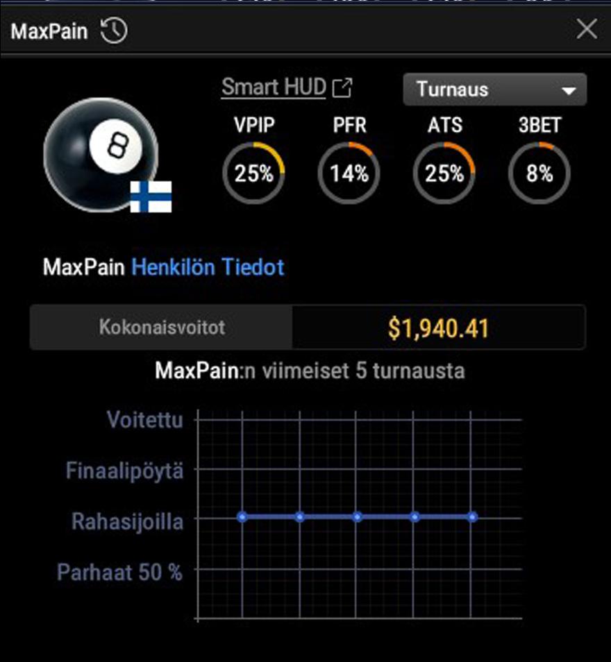 5krt peräkkäin money kun keskimääräinen fieldi n.8.000 pelaajaa. Btw. Leikkasin tarkemmat statsit pois. Valta-osa niistä on vihreällä.