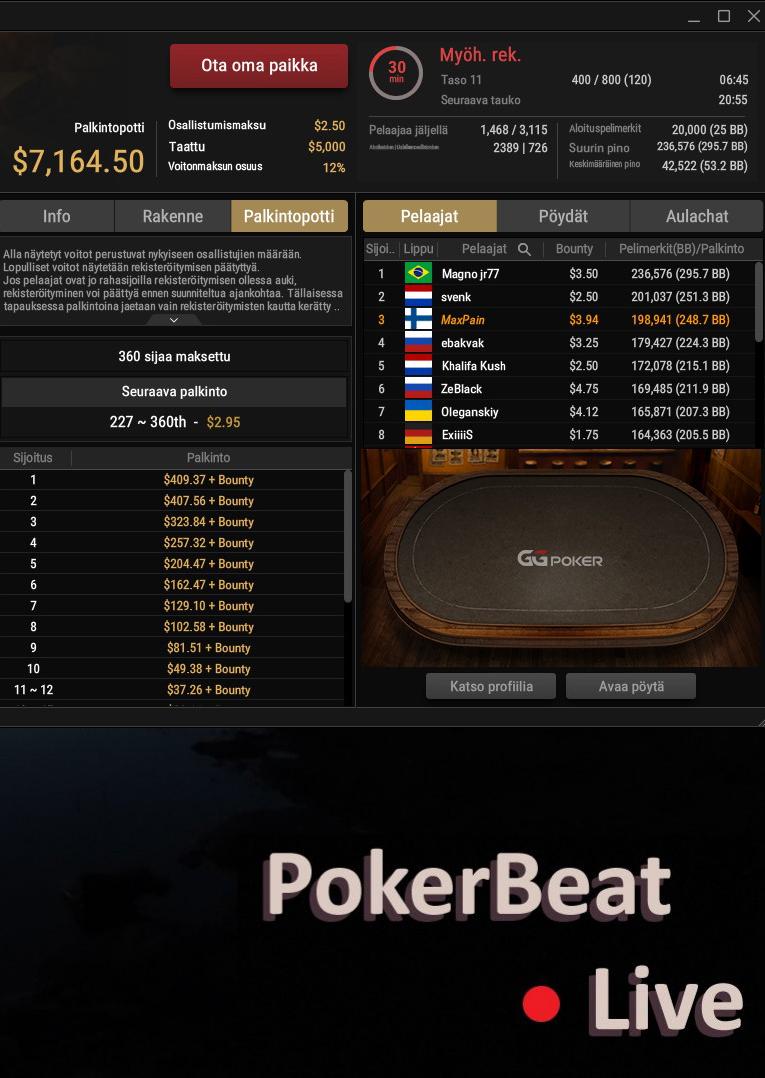 PokerBeatOsallistujaTaas pelipäivä joita aika harvakseen tullut pelailtua kesän jälkeen. Rahapäivä taas anyway.