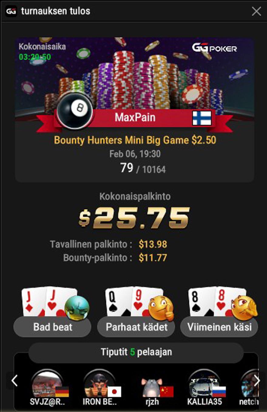 Kovaa peliä Bostonis, vai missä se oli ;) Huomenna ehkä toi 150$ satelliitti?