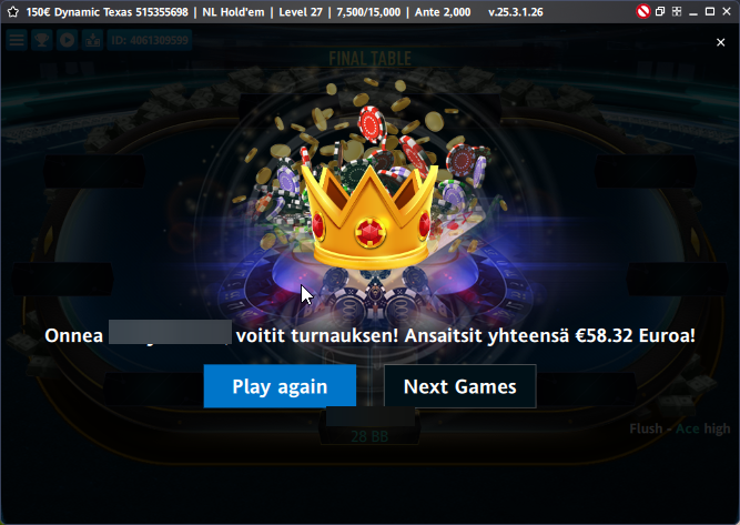 Eiliset pelit pääsi aloittaan tuttuun tyyliin vasta kympin jälkeen. Alku oli melko lupaava ja stäkkejä oli siellä täällä, mutta puolenyön jälkeen ei enää montaa pottia voitettu ja mikään ei oikein tuntunut etenevän maalia kohden. Muutamia cashejä, mutta lopputuloksena pikku tappio päivä 🫤 Jäljellä on enää yksi sessio ennen reissua ja hieman jäätiin alakanttiin joka mittarilla. Pelien vähyys ja ajanpuute ne suurimmat syyt tulosten pienuuteen.