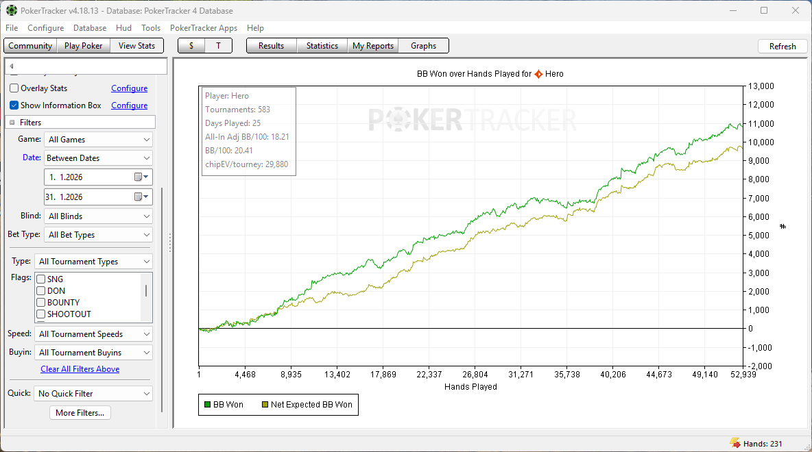 Loppua kohti runit vähän tasottu ja joulukuu jäätiin reilu 1500bb alle. Ft flipeissä tehtiin kyllä jonkinmoinen tappio ennätys joulukuussa, mutta ei oo jaksanu/ehtinyt sen kummemmin syventyä.