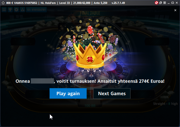 Tuossa kun alkoi kattoa parhaita scoreja taaksepäin, niin warm-uppien parit finut ja varsinkin jälkimmäisen hu taitaa mennä kärkeen. Eka kerralla toki kannu olis ollut lähes 4x isompi. Toka kerralla 80% flippi tappio hupissa ei kirpassut niin paljoa, koska kuu oli melkeen 20k upissa seriesistä muutenkin. Tämä jälkimmäinen osuikin sitten viimeiseksi täydeksi mtt vuodeksi jääneeseen vuoteen. Siitä loikattiin tekemään muuta ja näppäiltiin spinnejä vajaa pari vuotta koulun/duunin/yrityksen ohessa aina kun ehti. Nekin sitten jäi lopulta ajanpuutteen vuoksi kokonaan. Näin 5v lähes täysin pelaamatta olleena täytyy kyllä sanoa, että pelit ei ainakaan ole koventunut mtt osastolla. Toki nykyisellä pelin koolla saattaa olla asiaan vaikutusta 😂