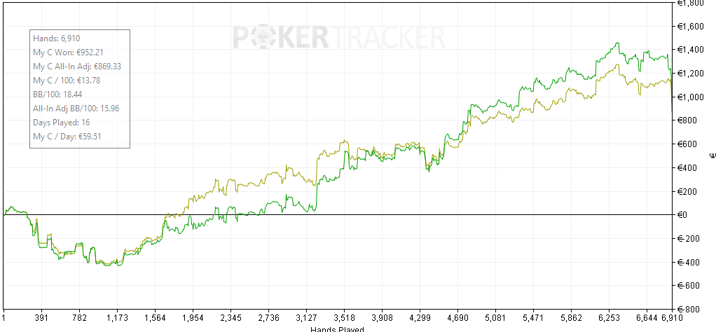 Nettipelit maistuu tällä hetkellä hyvältä, mutta niihin on ollut harmittavan vähän aikaa. Jurojinin träkkäyksen mukaan tälle vuodelle käsiä on painettu vasta vähän alle 7000. Tulos on perstuntumalla vähän vihreällä, mutta ko. tuntuma on monesti osoittautunut vääräksi kuukauden lopussa tuloksia tarkastellessa.