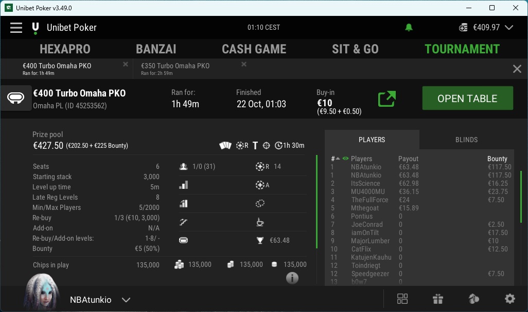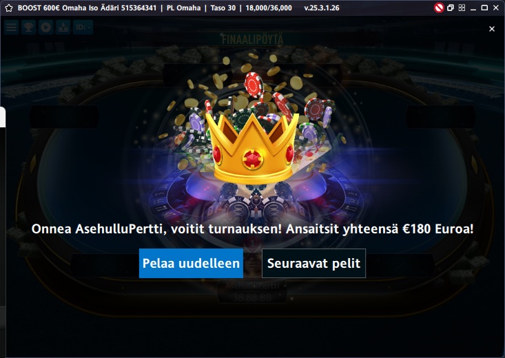 Ne 10k ja 100k freerollit tuli hakattua kun mini depolla sai niihin tikettejä.