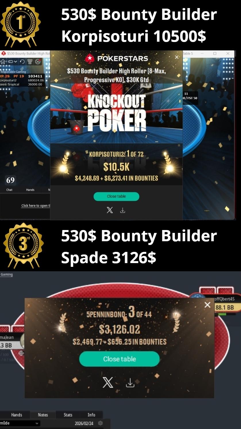 KissMyBass81OsallistujaMuuvi Akatemian videoille olen saanut välillä apuvoimia kun opiskelukaverit Korpisoturi ja Spade ovat vierailleet näkemyksiään kertomassa. Shoutout molemmille herroille: sijat 1. ja 3. 530$ Bounty Builderista saman viikon aikana on kova suoritus ja hieno palkinto viimeaikojen intensiiviselle PKO-opiskelulle!