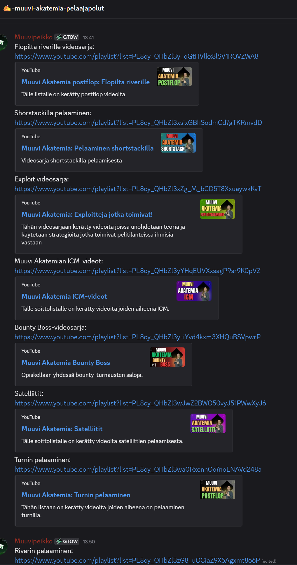 Joten nyt on tähän reagoitu ja tämä aamupäivä käytetty siihen että tein Muuvi Akatemian ”pelaajapolkuja”, eli videosarjoja joihin on kerätty videoita tietystä aihepiiristä.