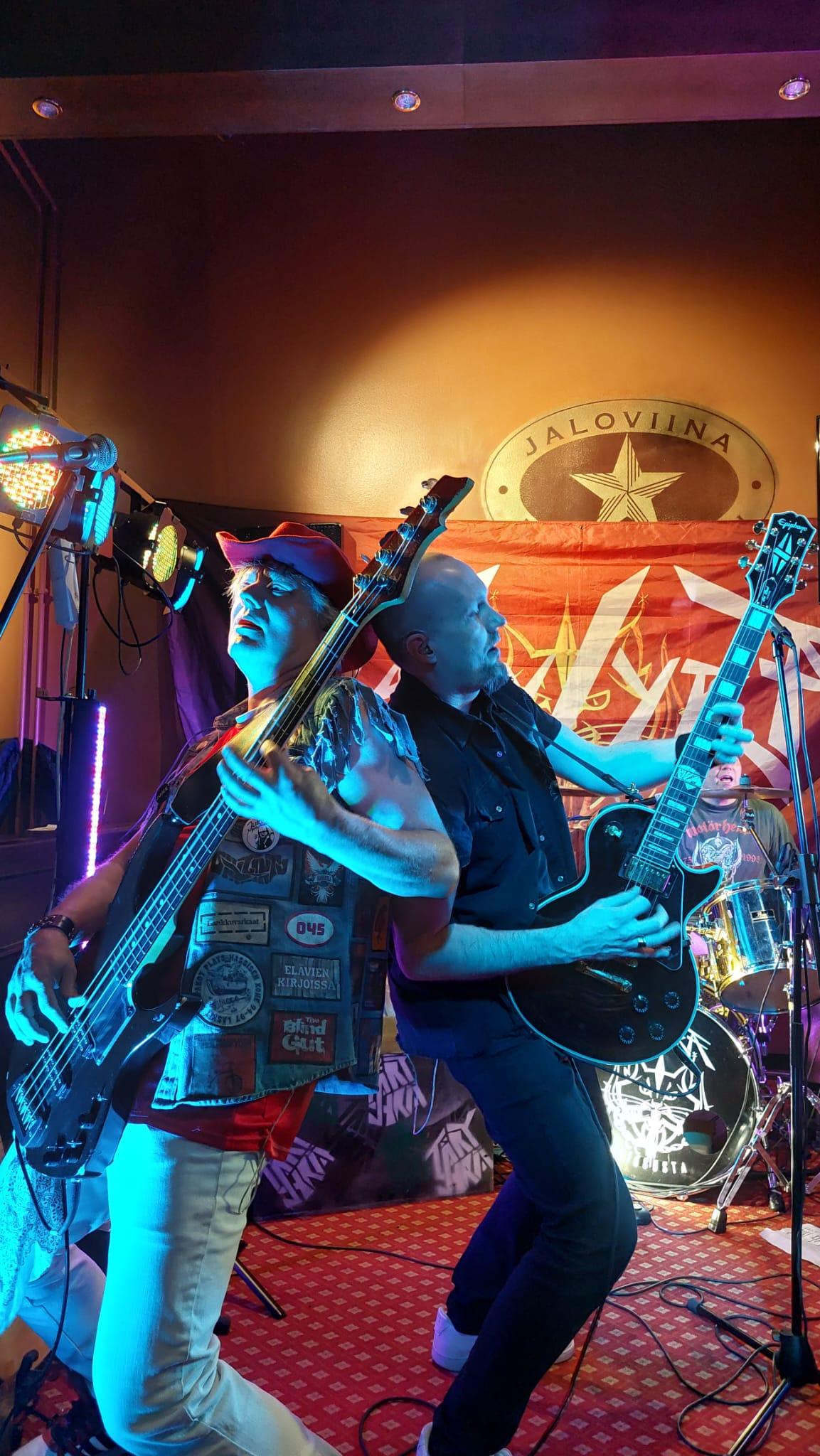 Ja vaikka tässä on +20v kitaraa rämpytelty välillä enemmän ja välillä vähemmän aktiivisesti niin nyt ollaan ensimmäistä kertaa pikkuveljen kanssa samassa bändissä kitaroimassa ja muutenkin aika sopiva bändi meikäläiselle eli treenit kerran viikossa ja keikkoja noin reilun kuukauden välein ja hommaa tehdään sopivasti ”tosissaan mutta kieli poskessa”.