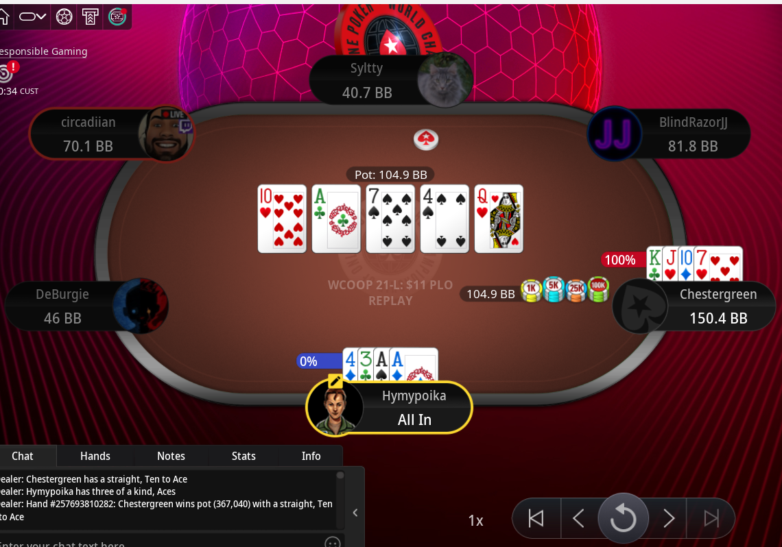 Olin 3/6 ja yks 5bb stäkki, mut eikai tossa muutakaan tieten voi. Kuudes sai 75e ja kolmas 240e et on siinä semi iso ero bini wise. Voitolla oltas kyl päästy kolistelemaan pytystä. Erittäin nahkanen spotti icm kannalta.