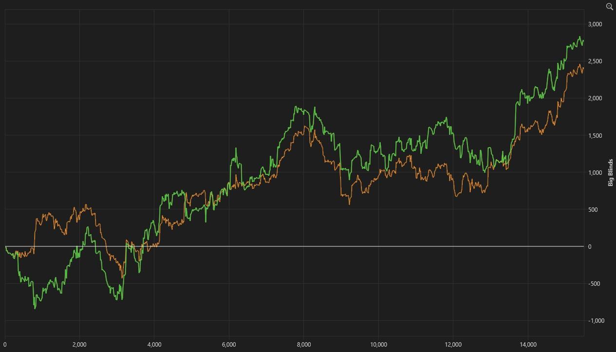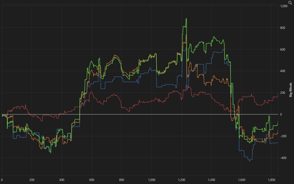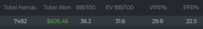 Nojuu kyllä se tälle päivälle riittää. Väsy iski loppuun ja shortit veivät huomaamatta merkkejä niille +ev spoteissa. Sitte ajeltiin päivän isoin pilli 170bb btm fullia päin eikä irronnu. Aika laittaa pillit pussiin ja levähtämään.