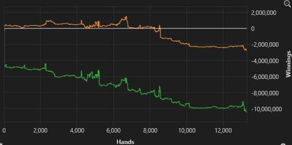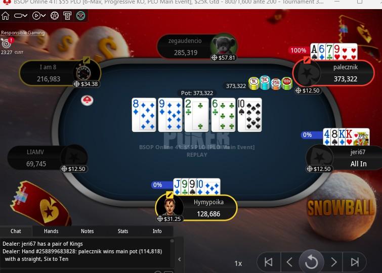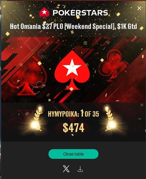 Viimeismpänä tämä 55d main eventissä. Nuo samat paskat laittaa rahansa sisään kuukausi toisensa jälkeen samalla tavalla ja sinne ne potit vaan lipuu. Jeri oli 20bb shortti, flopilta painettiin sisuksiin kaikki. Jippikaijei motherfuckers