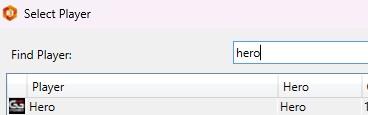 Näyttääkö mitään jos painat Select Player kohdasta ja kirjoitat Hero tuohon kenttään?