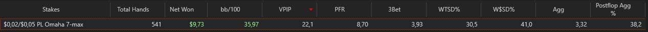 Mutta voisin kuvitella että voisit nostaa vpip jonnekkin yli 30. Vpip/PFR cappi näyttää liian isolta(limpataan liikaa vs että reissataan) ja 3betti % tuntuu myös superpieneltä