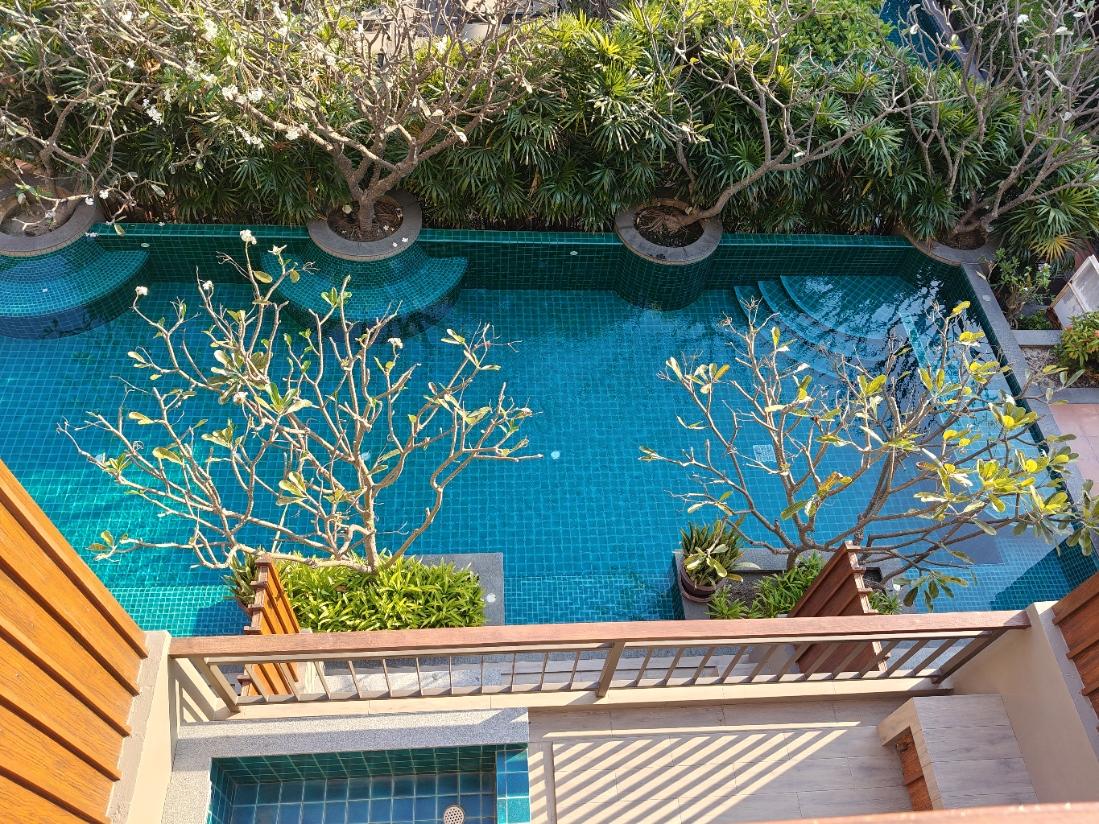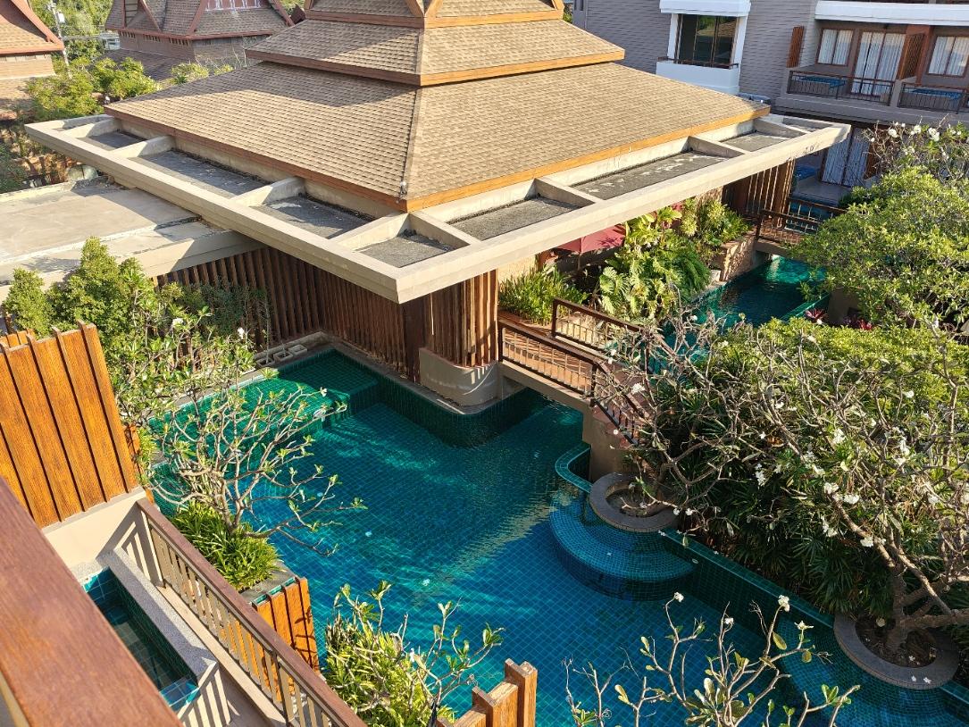 OsallistujaVaikka ollaan pyritty olemaan ainakin sellaisella puolittaisella budjettireissulla niin Hua Hinin 12€ hotellilta suunnattiin kolmeksi yöksi vähän tasokkaampaan ja kalliimpaan hotlaan. Tämä sijaitsi keskusta-alueen ulkopuolella, mikä ei loppujen lopuksi paljoa haitannut. Hotelli tarjosi parin tunnin välein ilmaisen shuttlekuljetuksen keskustaan ja hotlan lähettyviltäkin löytyi kyllä 7/11 ja muutama ravintola. Oli ehdottomasti paras hotelli, jossa Thaimaan reissuillamme ollaan oltu. Hieno uima-allas ja mukava allasalue aurinkotuoleineen. Iso huone ja ennen kaikkea todella hyvä sänky + tyynyt (mitä harvoin voi Thaimaan halpishotellien kohdalla sanoa). Iso taulutelkkari, jossa myös englanninkielisiä kanavia + YouTube. Kelpasihan tuolla sen 2-3 päivää lekotella ja polskutella uima-altaassa. Tässä parit kuvat otettuna huoneemme parvekkeelta:
