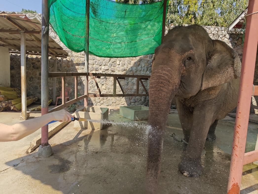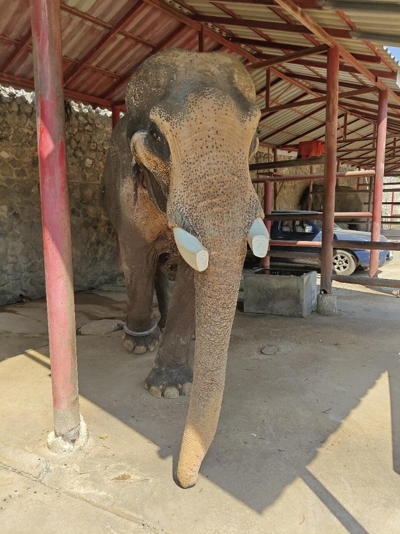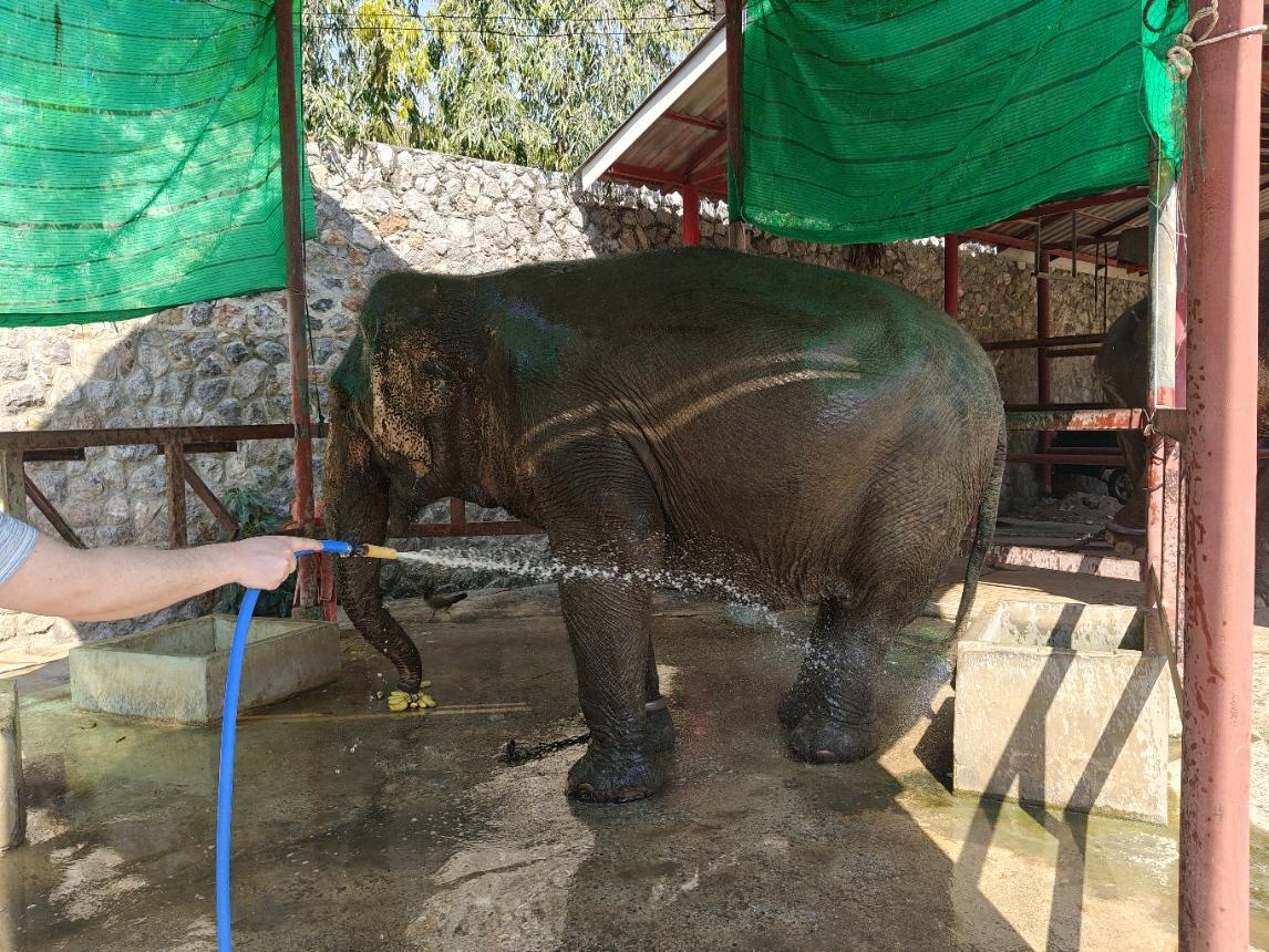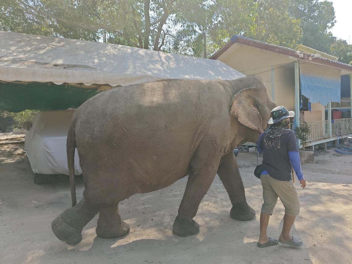 Foundationissa oli tällä hetkellä yhteensä neljä norsua. Nuorin oli 17-vuotias ja tämä nestori ja paikan ainoa uros peräti 80-vuotias:
