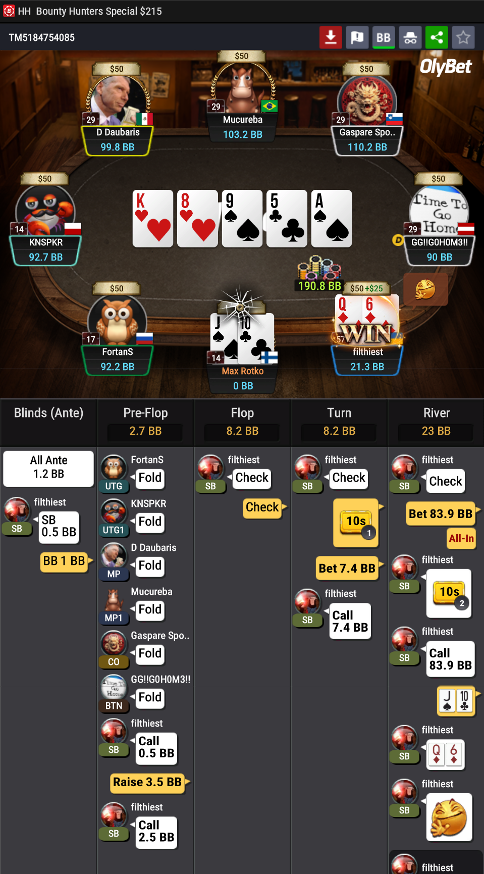 Roikuit multiway bbn liidii vs 567ss boardii A6cc ja 4c turnii roikuit viel pientä lyöntii vs ja sit 9 riverii ei väriä maaliin vihulta 2/3 lyönti nii käänsit piipuks ja survoit kaike. Aggre on kyl pelityyli, arvostan!