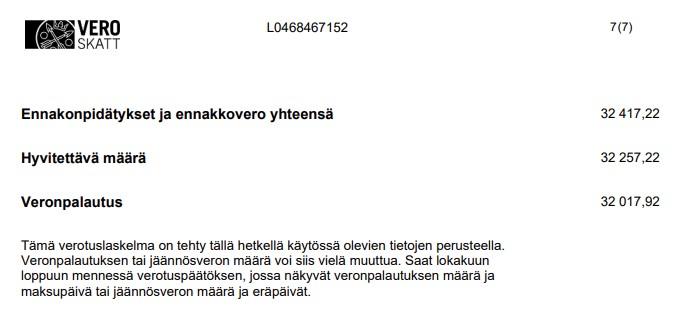 Eli vähän turhan reippaasti tuli lyhennettyä tuota velkaa,vähempikin ois riittänyt. Korkoahan verottaja ei tuolta ajalta maksa kun Särki maksaa sen vajaan 5k kokonaisuudessaan
