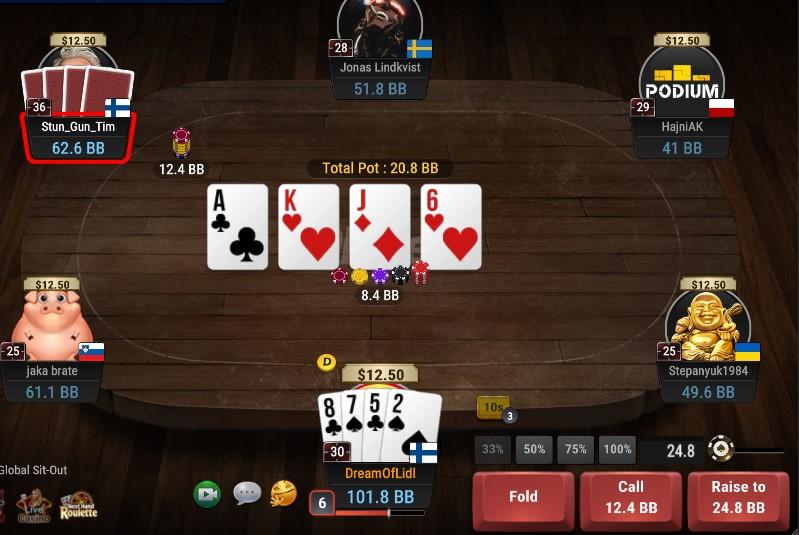 avaaja raise joku 70%,tuuppasen siihen 30bb ja takaa herää.