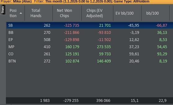Tähän kun runannut omasta mielestä erinomaisen huonosti niin -700€ paskana työviikkona jolloin ei pitäis pelata ollenkaan tai ei ole aikaisemmin pystynyt pelaamaan niin on aika helvetin hyvä suoritus ja antaa nyt toivoa pokerissa voitolliseen peliin kun se on mahdollista vielä kuroa umpeen 2 hyvänä viikkona ja työpaikan tullessa noilla rytmeillä pystyy vielä jotenkin tekeen duunia.