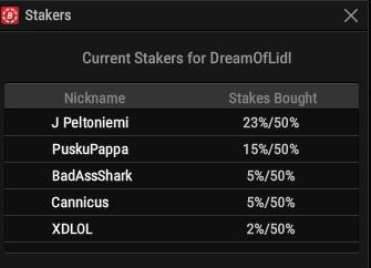 Stars 109 ja 11d winter series plo lisävaluena näille samalla % osuus kaikista yli 4figs rahastuksista eli esim 1200 niin sharkki saa siitä 5%