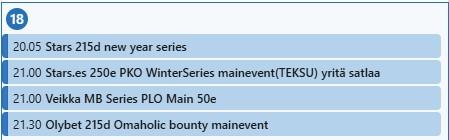 - Yks iso tekijä miks pokeri ylipäätään kiinnostaa ois jos pääsis vielä pelaan jotain wsop turneita niin pelkästään että pääsee hakkaan Tallinnaan 1 pöytää kännisten suomalaisten kanssa käteispelejä ja jokainen päätös kestää 5minuuttia niin ei hirveästi houkuttele
