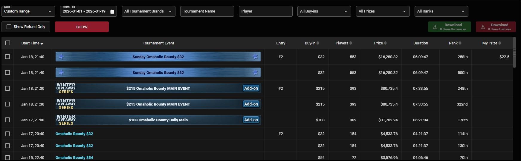 Osaako joku sanoa GG käsihistorian latausmahdollisuudesta onko se jotenkin jumissa atm vai pitääkö vuoden alussa tehdyllä uudella nickillä pelaa joku x määrä turnauksia että sieltä saa ladattua käsihistoriat?