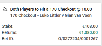 Yks vuoden odotetuimpia iltoja! Hyvää viihdettä taas koko rahan edestä ja toivottavasti allypallyn yleisö jättää buuaamatta myös VanVeenille ettei mestaruuteen vaikuta trollit. 9 tikkaista on myös odotettu joten jokohan se jo tulisi? Kertoimet sille oli liian pieniä kun tyyliin joku 10