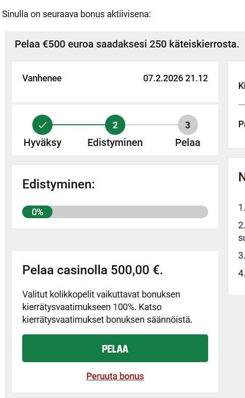 Talleta 20€ ja saat heti 10€ arvoisen megakierroksen. Ei kierrätystä!
