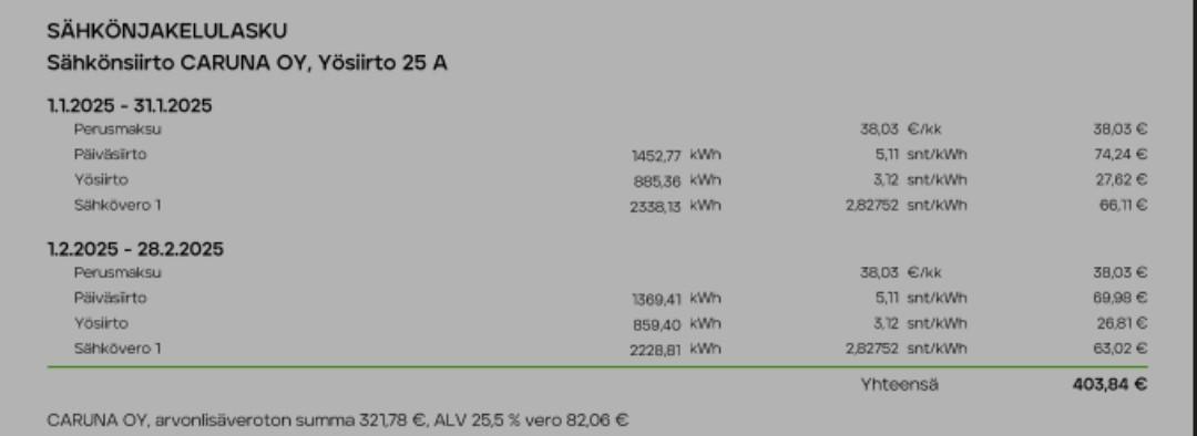 sharkieOsallistujaMä vähän liiottelin myös sähkölaskuis kun lsskin noi läpi. Carunat oli reilu 1800e vuos ja Helenit 2050 eli n3900e/vuos