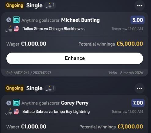 Tässä vielä vikat betsit. Perryyn en pystynyt vastustaa kiusausta tuolla kertsillä. Kadri ja Bunting oli näitä ekan pelin uudessa paidassa pelaavia,joskin Kadri paluumuuttaja. Odotukset erityisesti Bunting on kovat sillä Hintzikin loukkaantu taas kerran ja peliaikaa pitäs tulla roppakaupalla kun paljon myös muita ukkoja telakalla.