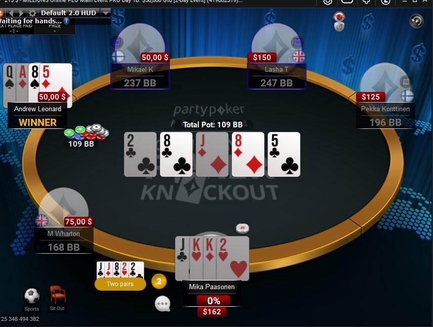 Limppasin naulat kun agro kala btn aattelin että se eristelee. Koistinen vetikin sit potin sb ja minä rr pot ja Koistinen otti ja donkkas alle kaikki ja veti paskoilla ohi. Ison flipin sitäkin vastaan hävisin jo aikasemmin kun reissasin ite jotain paskaa utg tyyliin QT9xds ja J82fd sökönä turn joku pieni 5 avas toisen fd itel vaan 1 värinveto tms potitin ja Mikael otti AK82ds ilman fd 82 ratas river 2 flopin väri perille ja löin sen ahneena allin hakien bonitoa kun aattelin et se olis usein isopari+fd lyönyt flopilla ja aattelin et siel on useammin potcontroll AAxx joka ei halua mennä vielä flop ja siihen ehkä aukes takaväri