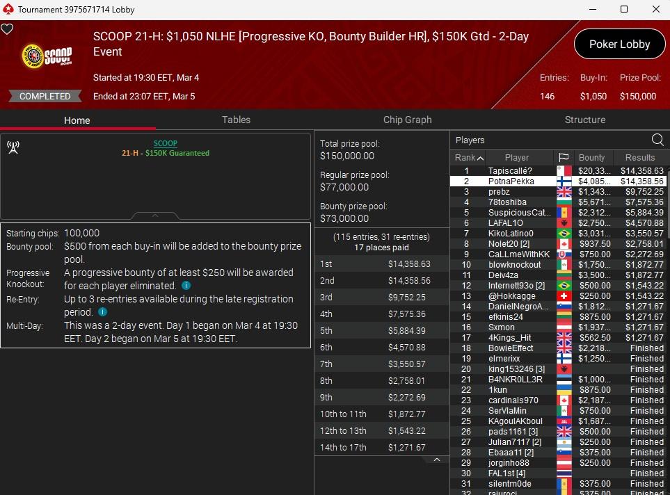 SCOOP 21-H: $1050 NLHE PKO
