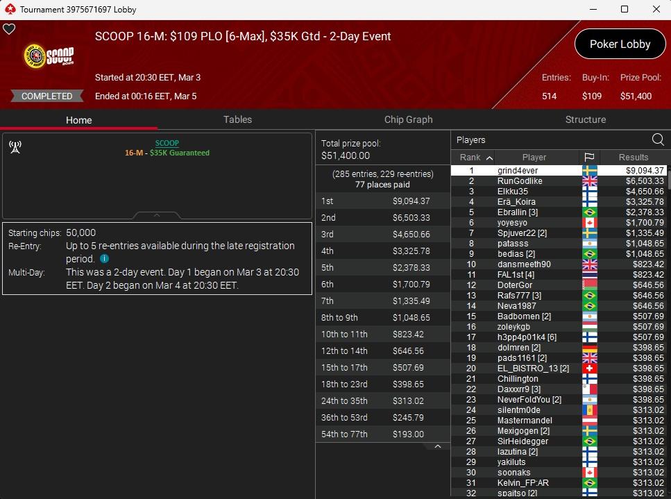 SCOOP 16-L: $109 PLO