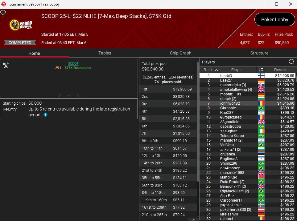 Antti TiainenAvainmestariAvataan tämän vuoden PokerStarsin SCOOP-turnaussarjalle oma ketju. Päivitellään tänne suomalaisten menestyksestä, ja täällä voidaan luonnollisesti keskustella myös kaikesta muusta tapahtumaan liittyvästä.