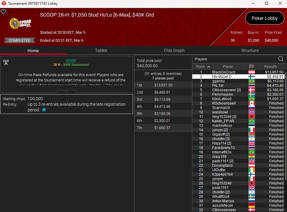 SCOOP 28-H:$1050 Stud Hi-Lo