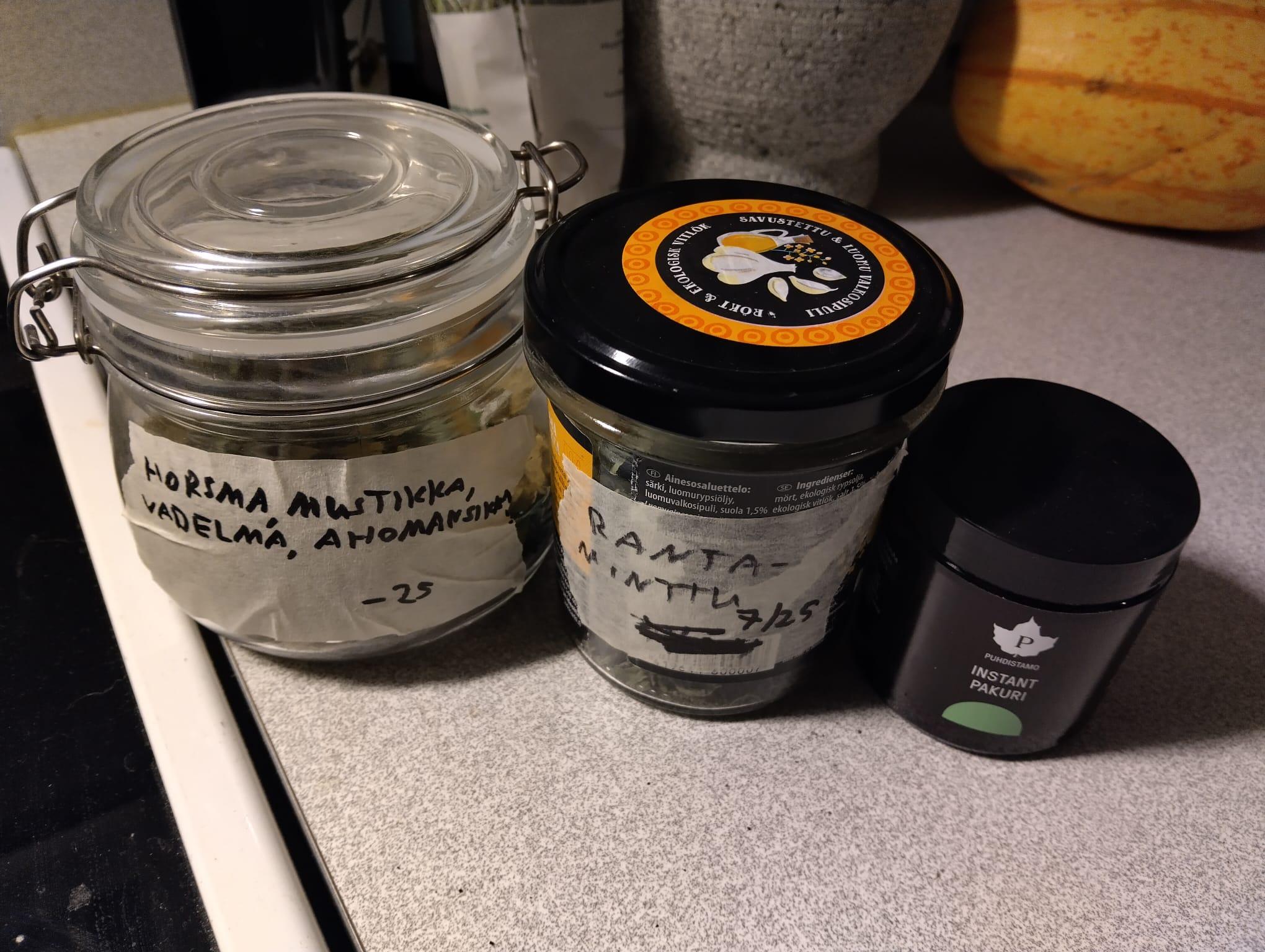 Kesällä kerätyt ja ostetut ”tee”ainekset tuovat tunnelmaa pimeisiin grindi-iltoihin. Villimintusta saa sellaisenaan mahtavaa juomaa, tuon sekoituksen reseptiikkaa pitää vielä kehittää aika paljon. Nyt se maistuu lähinnä epämääräisen ruohoiselle. Ensi vuonna testaan fermentointia pelkän kuivauksen sijaan.Pokeri on sujunut mukavasti. Ostin Black friday -aleista lisää materiaalia hyväksi toteamiltani valmentajilta, ja opiskeluiden suhteen on suunnitelma selvä taas pitkäksi aikaa. Kuluneen vuoden aikana turnausohjelma on hioutunut haluamaani muotoon, ja nyt tuntuu hienolta voida vain toteuttaa tehtyä suunnitelmaa. Pelinvalinnan pohtimiseen ja muuhun säätöön saa kulumaan yllättävän paljon päätöksentekoenergiaa, jonka voisi käyttää myös pelin sisäisiin tilanteisiin. SM-pronssi ja pari muuta mukavaa osumaa siivittävänevät vuosituloksen edellisten nurkille, joulukuusta riippuen ehkä hiukan ylikin.