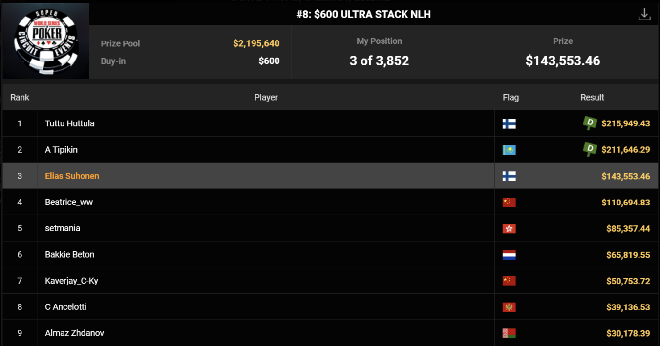 Hienoa oli katsoa, miten pelottomasti suomalaiset Zhu ja Nyholm painoivat mainissa. HT on tuttu yhteisten kaverien kautta, todella vaikuttava suoritus isojen valojen alla!Seuraavaksi hetki lomaa ja valmistautumista toukokuussa alkavaan GG World Festival -sarjaan. Henkilökohtainen tavoite toukokuulle on, että saisin pelattua 500 turnausta. Pelaan melko pientä pöytämäärää, joten volyymi on ollut turhankin pientä viime aikoina. 500 turnausta olisi määrä, johon olisin tyytyväinen. Katsotaan, jos päivittelisin tännekin kuulumisia.