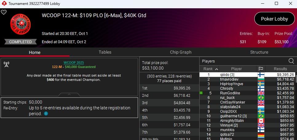 ”qiido” sai kunnian tuoda Suomeen sarjan viidennentoista ja samalla viimeisen WCOOP-voiton.