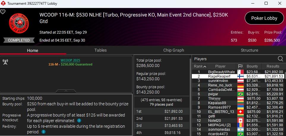 WCOOP 116-M: $530 NLHE Turbo PKO