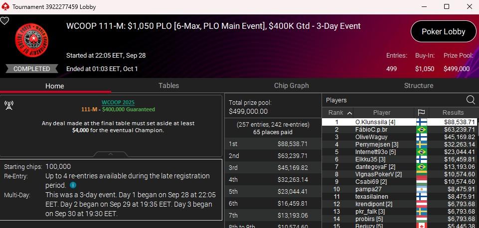 ”O.Klunssila” pokkasi komeasti pytyn keskikokoisesta PLO-pääturnauksesta!