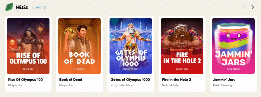 Pelien jaottelu on selkeä, joten löydät omista osioista muun muassa hittipelit, klassikot, uutuudet, ostobonuspelit, jackpotit sekä ison maksimivoiton slotit. Suoraa hakutoimintoa voi käyttää vasta pelitilille kirjautumisen jälkeen.