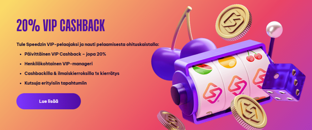 Tervetuliaisbonuksen lisäksi Speedz tarjoaa pelaajille myös päivittäistä käteispalautus- eli cashback-etua.