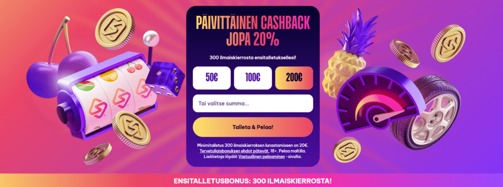 Talleta 20€ – Saat 300 ilmaiskierrosta