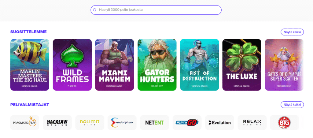 Tuohella on hyvät palautusprosentit. Erityisen kiitoksen kasino saa Play’n GOn sloteista, joissa on laajalti parhaat mahdolliset RTP-versiot (harvinaista vuonna 2025).