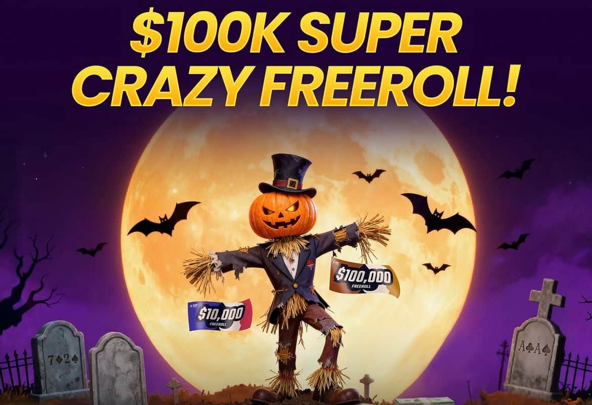 Tänä sunnuntaina tarjolla on jälleen $100K Super Crazy Freeroll, todellinen megaturnaus, jossa panokset ja tunnelma ovat korkeimmillaan.